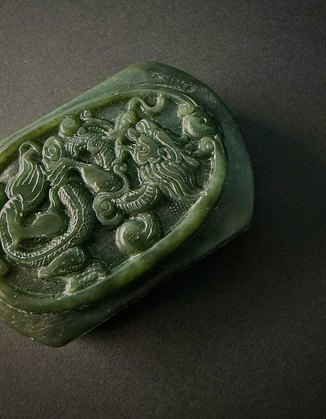 Symbole de protection dans la culture chinoise, la boucle de ceinture en jade incarne une élégance discrète et un raffinement intemporel. Le motif du dragon représente l’autorité, la réussite et l’énergie masculine.